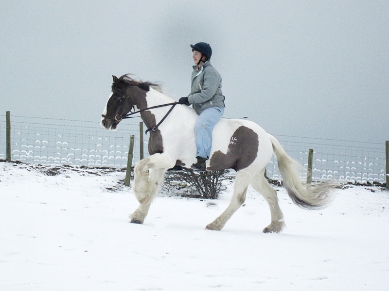 Lance and Anna riding in the snow